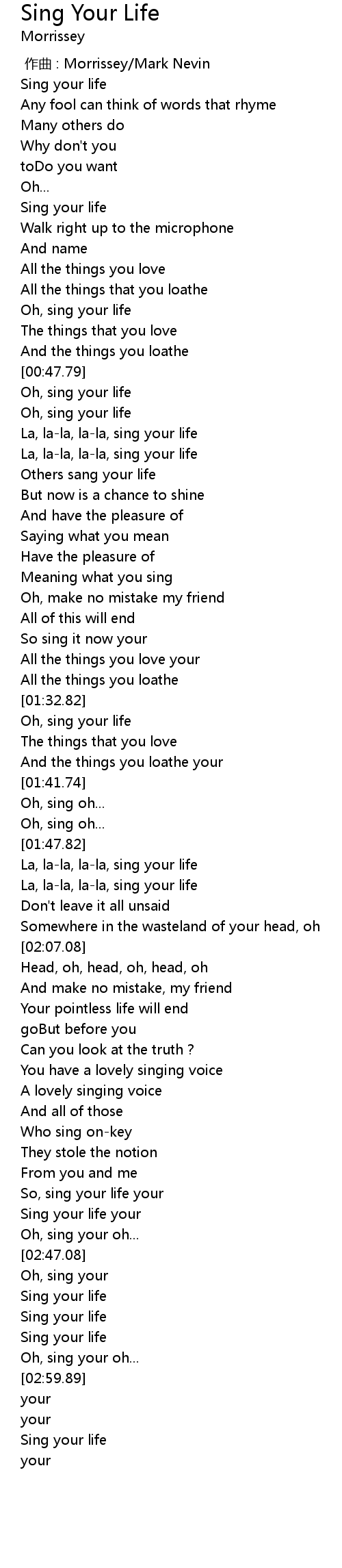 | [02:54.96] | Sing your life |