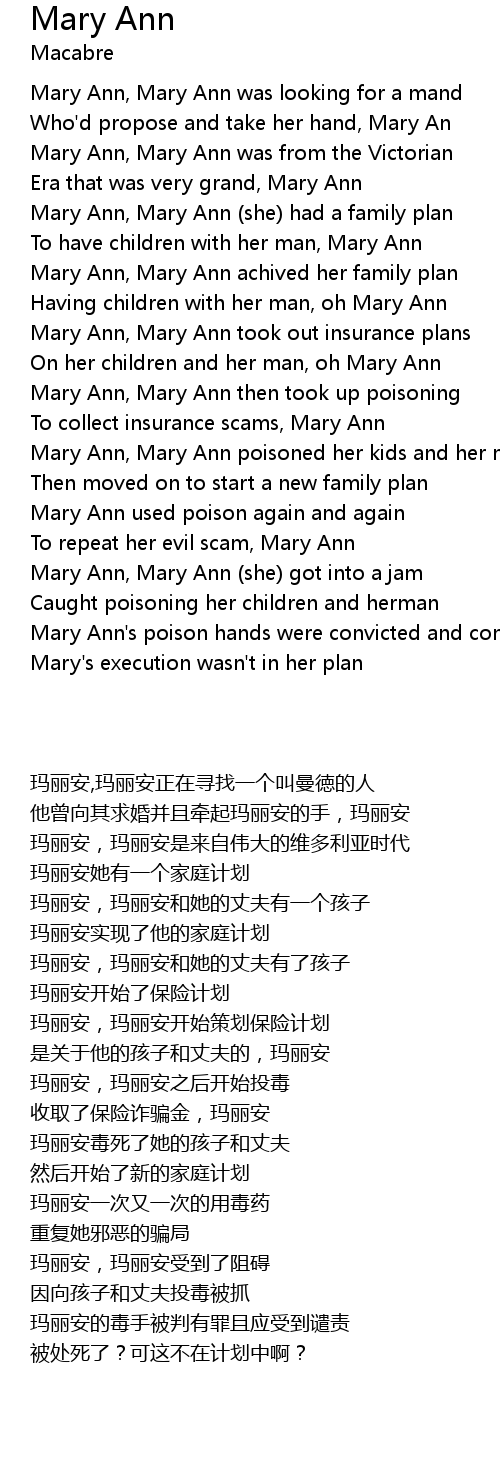 Mary Ann, Mary Ann poisoned her kids and her man |