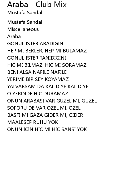| 歌曲 | Araba - Club Mix |