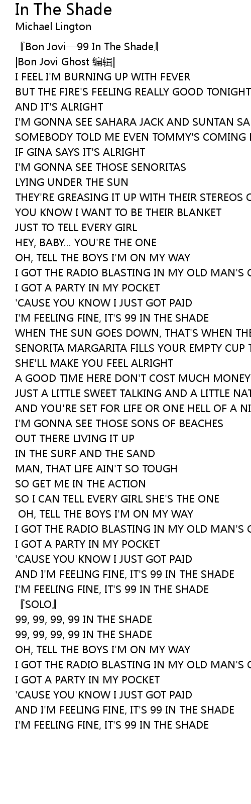 | [00:00.00] | Bon Jovi 99 In The Shade |