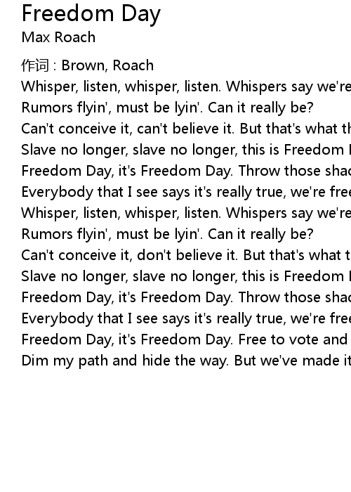 | Freedom Day, it' s Freedom Day. Throw those shackle n' chains away. | |