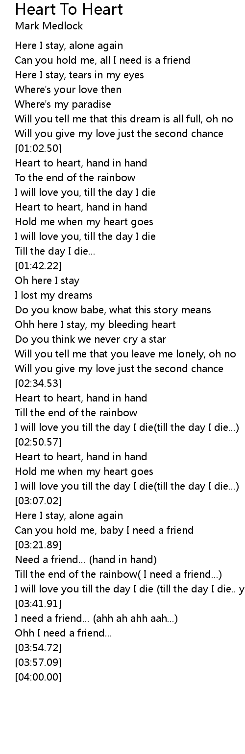 Heart to heart, hand in hand |