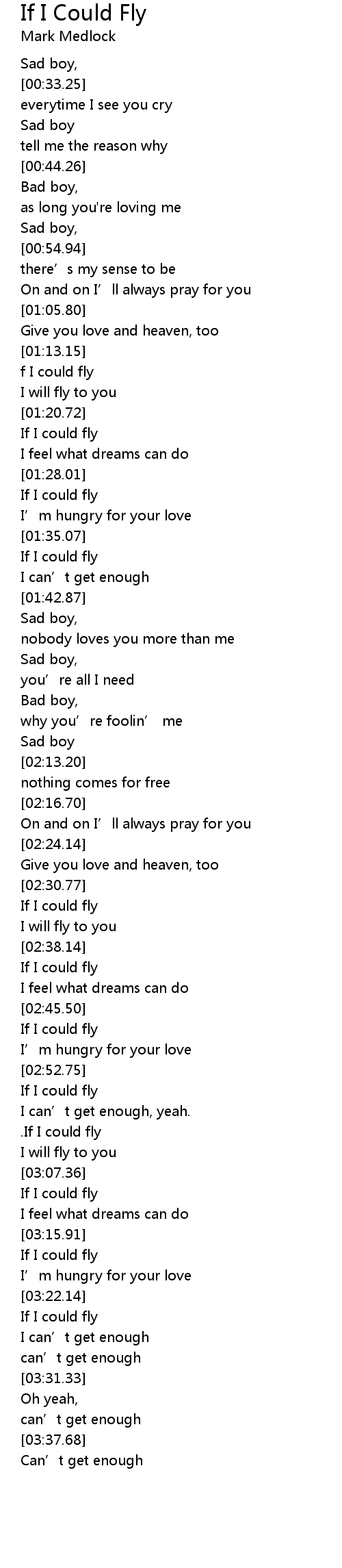 | [03:01.60] | .If I could fly |