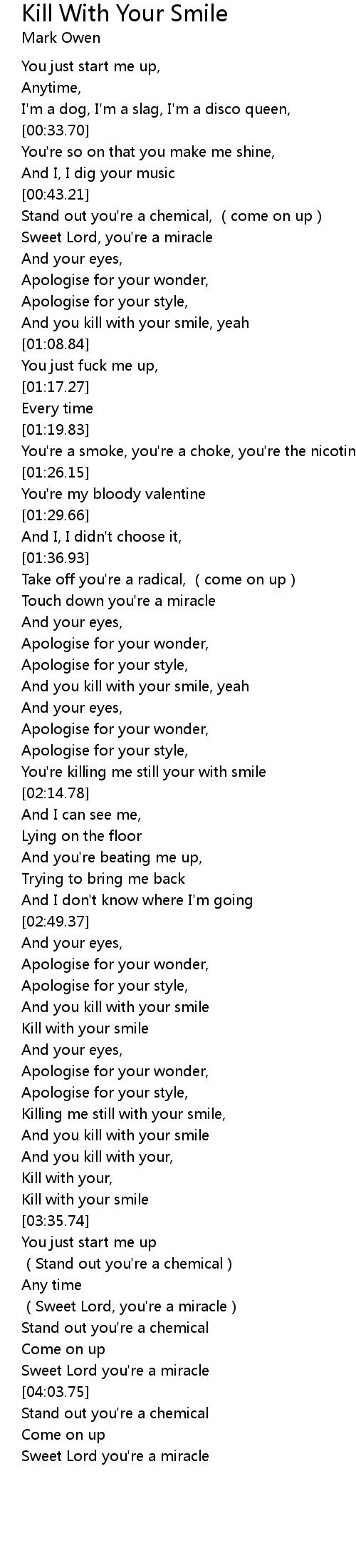 | [03:24.98] | And you kill with your smile |