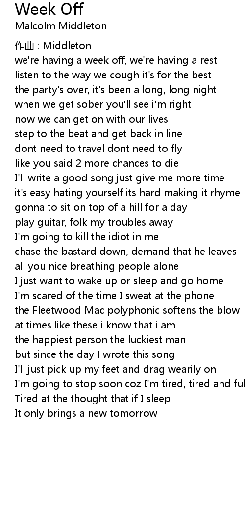 | 歌曲 | Week Off |