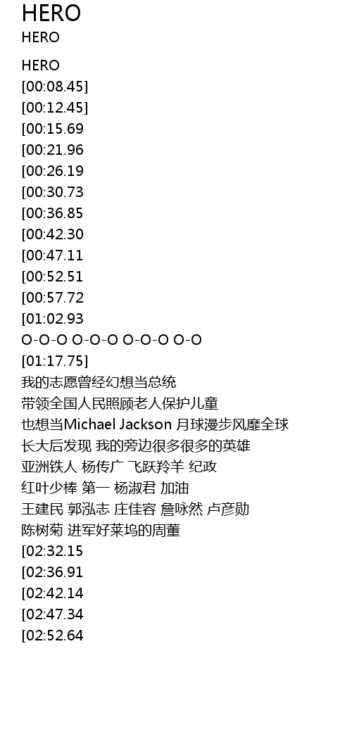 | [02:00.39][00:57.72] | H-E-R-O 大家都是个英雄 |