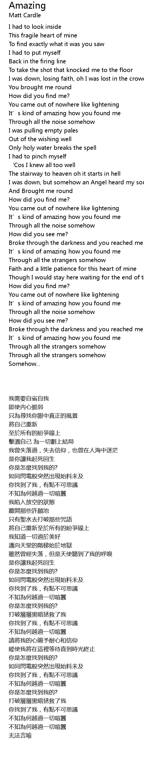 | [00:46.700] | It' s kind of amazing how you found me |