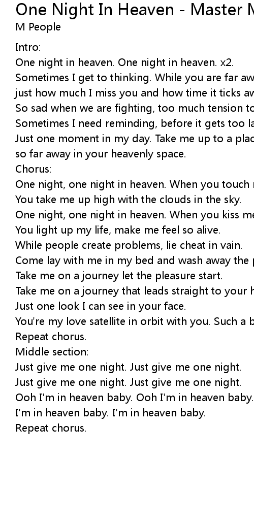 One Night In Heaven - Master Mix 歌词