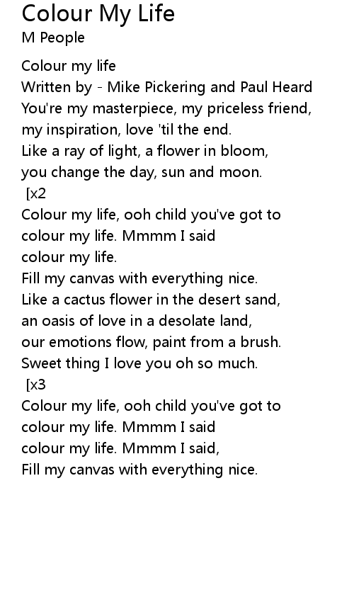 colour my life. Mmmm I said, |