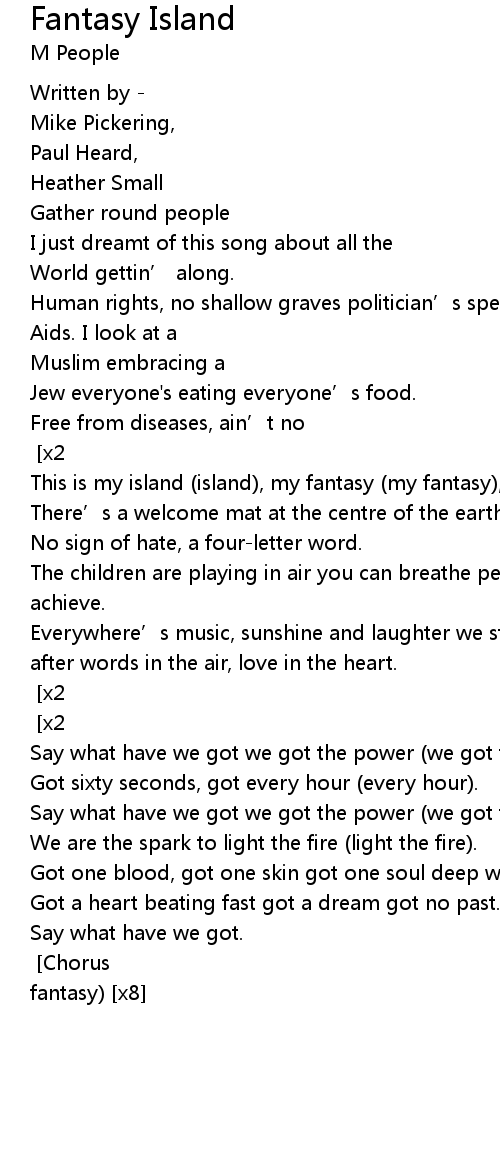 | This is my island island, my fantasy my fantasy, my fantasy fantasy. | |