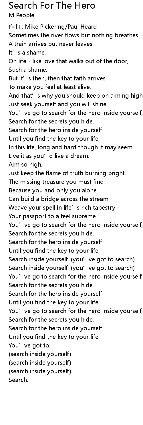 | You' ve go to search for the hero inside yourself, | |