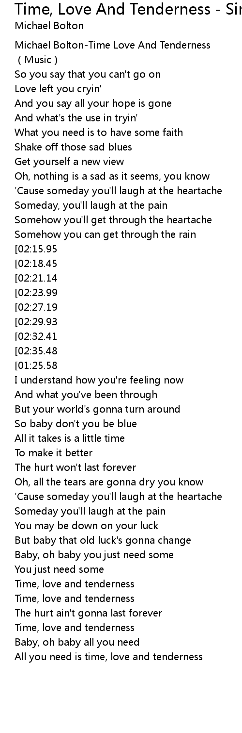 | [00:00.00] | Michael BoltonTime Love And Tenderness |