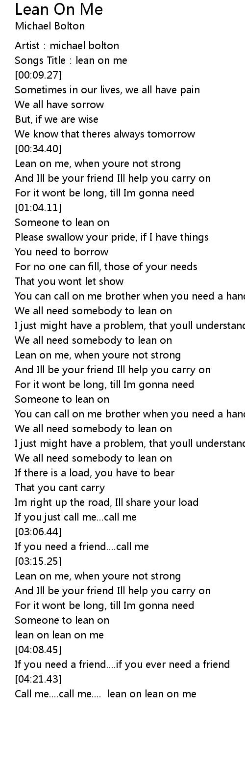 | [00:04.81] | Songs Title:lean on me |