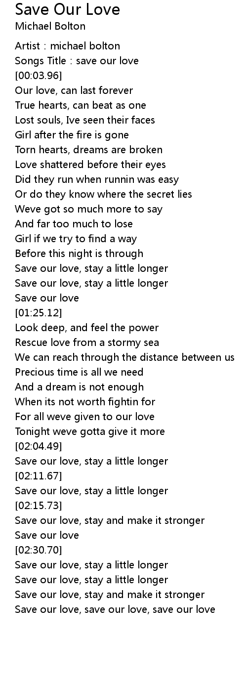 | [03:24.81] | Save our love, stay a little longer |