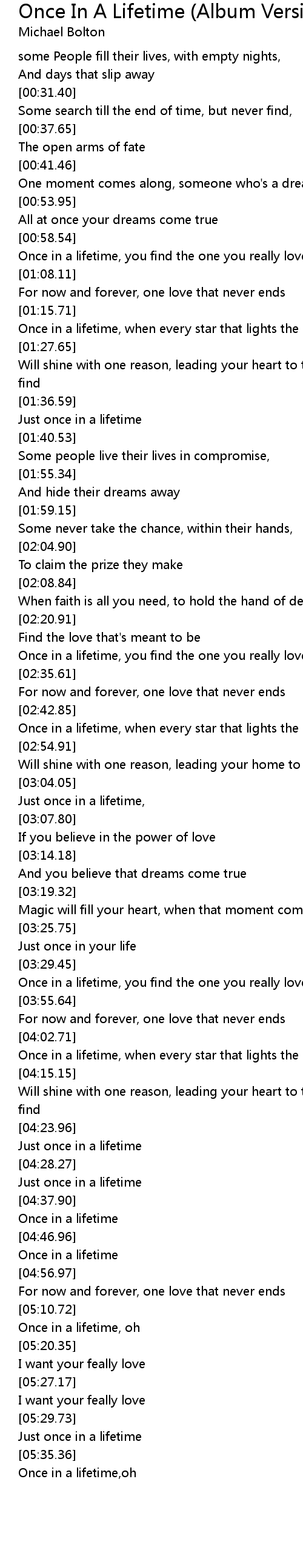 Just once in a lifetime, |