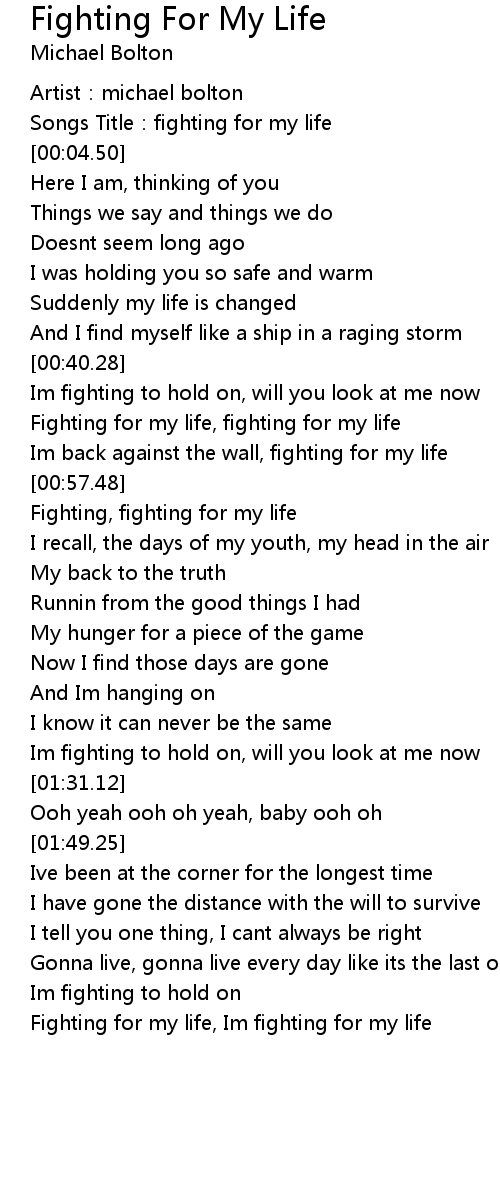 | [00:58.35] | Fighting, fighting for my life |