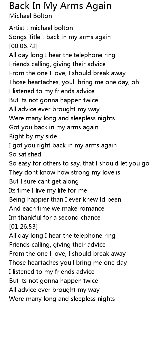 | [00:04.09] | Songs Title:back in my arms again |