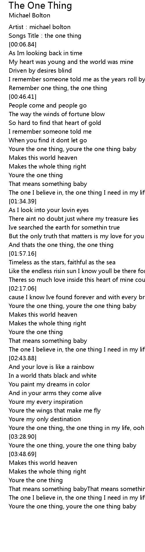 | [04:05.55] | Youre the one thing, youre the one thing baby |