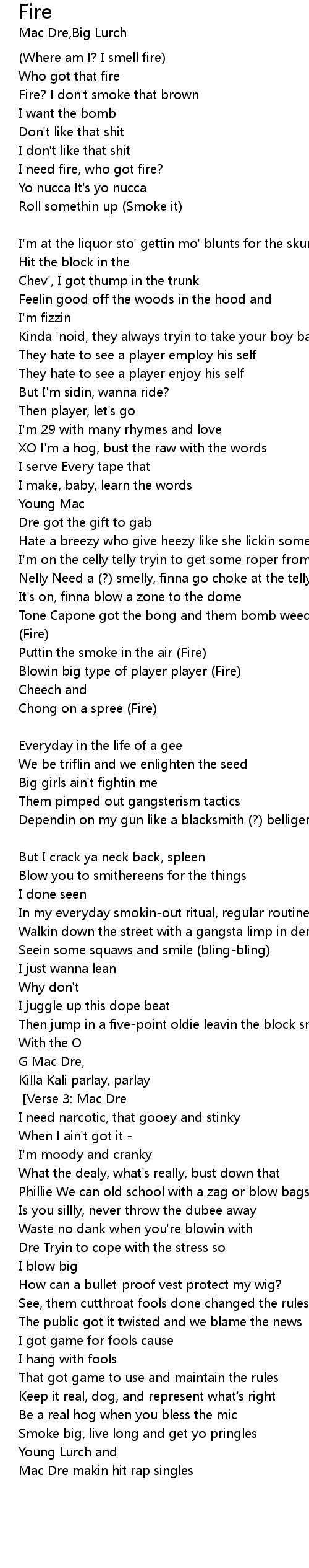 | Tone Capone got the bong and them bomb weed songs [CHORUS: (Harm) & Big Lurch] (Fire) | |