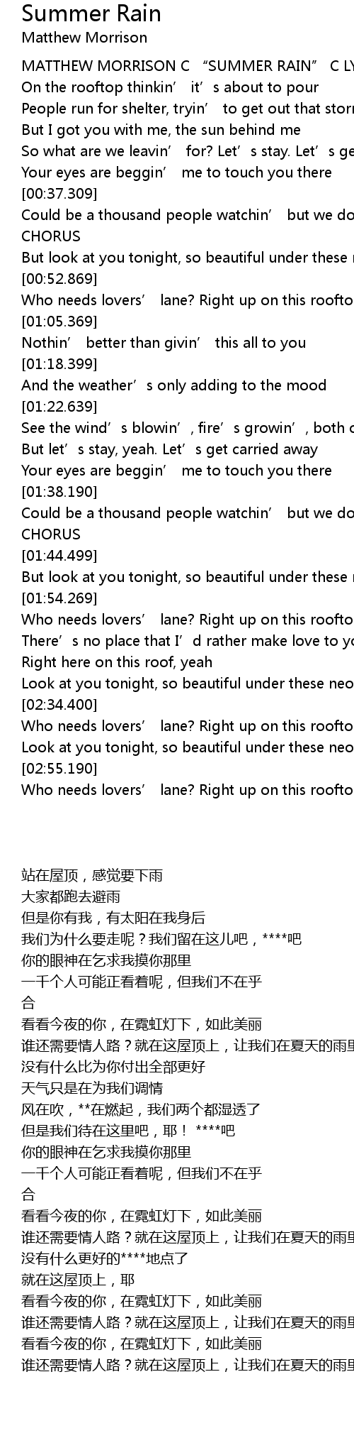 | [00:05.549] | MATTHEW MORRISON C “SUMMER RAIN” C LYRICS |