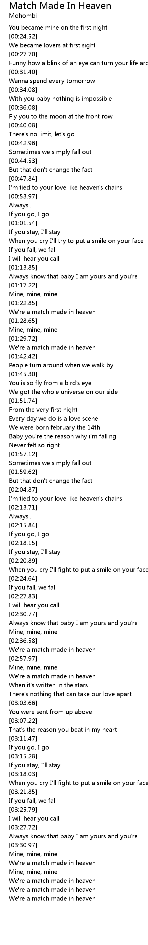 | [03:01.28] | We're a match made in heaven |