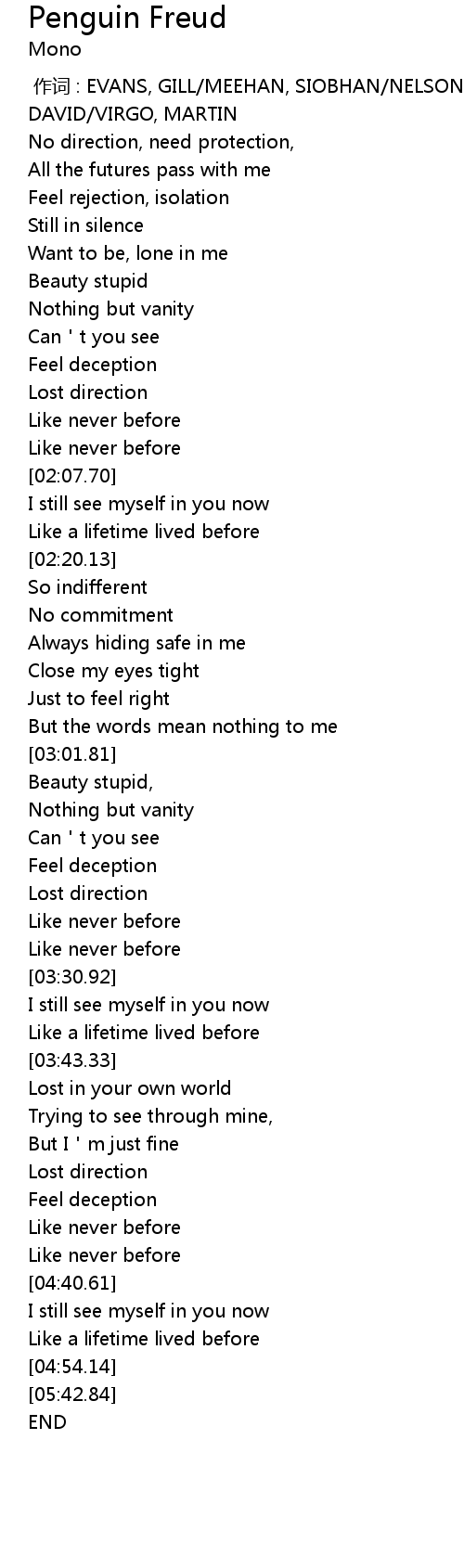 | [00:00.00] | 作词 : EVANS, GILL/MEEHAN, SIOBHAN/NELSON, BILL/SYLVIAN, DAVID/VIRGO, MARTIN |
