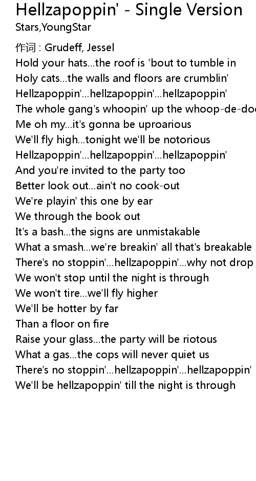 | There' s no stoppin'... hellzapoppin'... hellzapoppin' | |