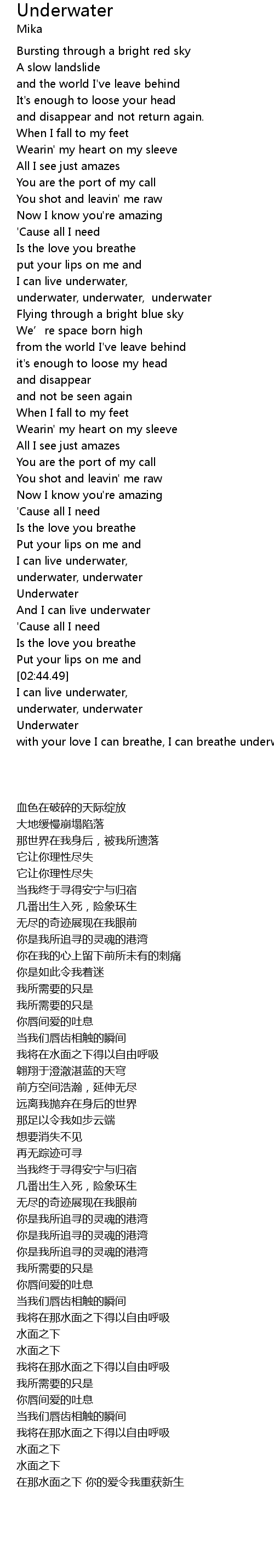 | [02:48.71] | with your love I can breathe, I can breathe underwater |