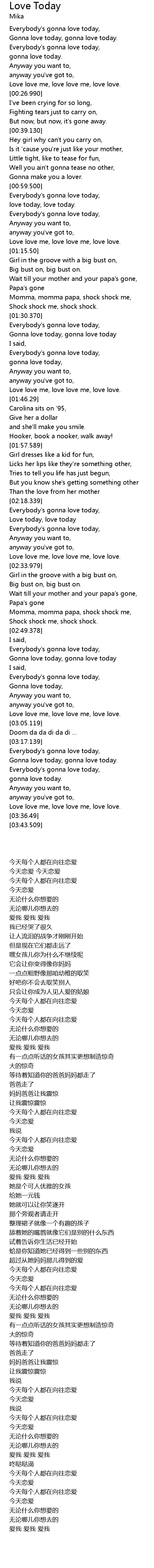 | [02:51.29] | Gonna love today, gonna love today |