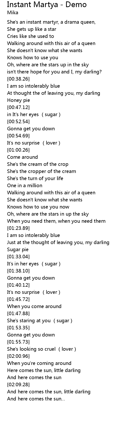 | [01:31.27] | Sugar pie |