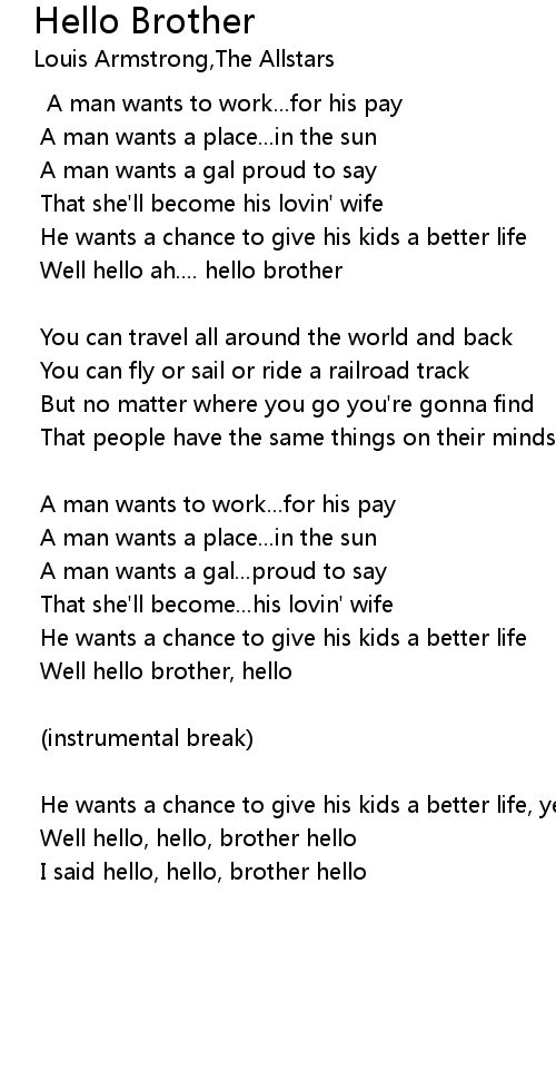 I said hello, hello, brother hello |