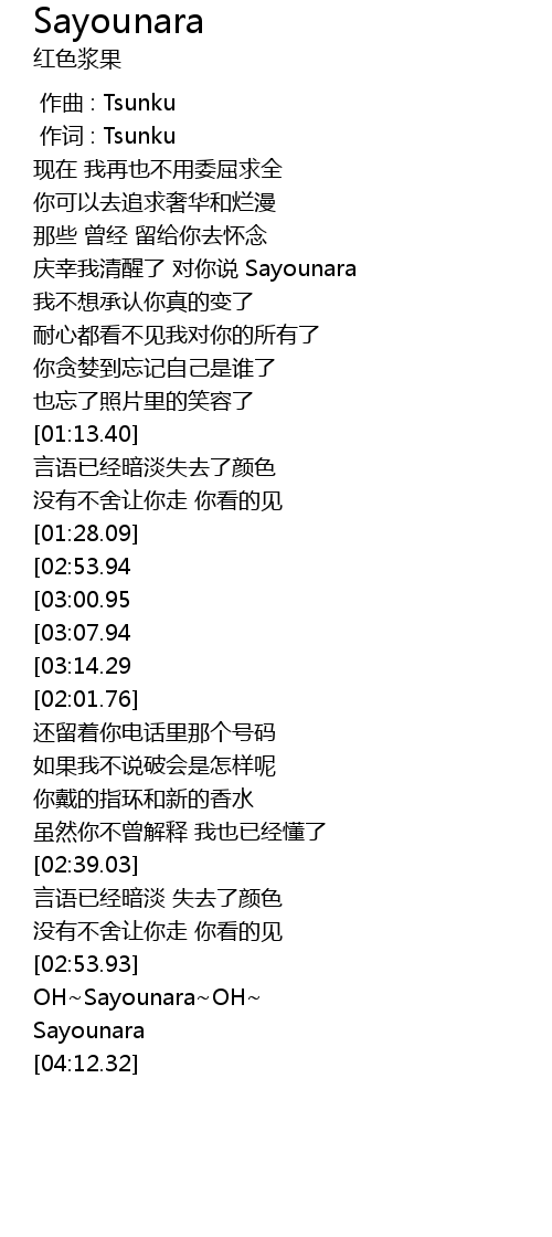 | [04:09.86] | Sayounara |