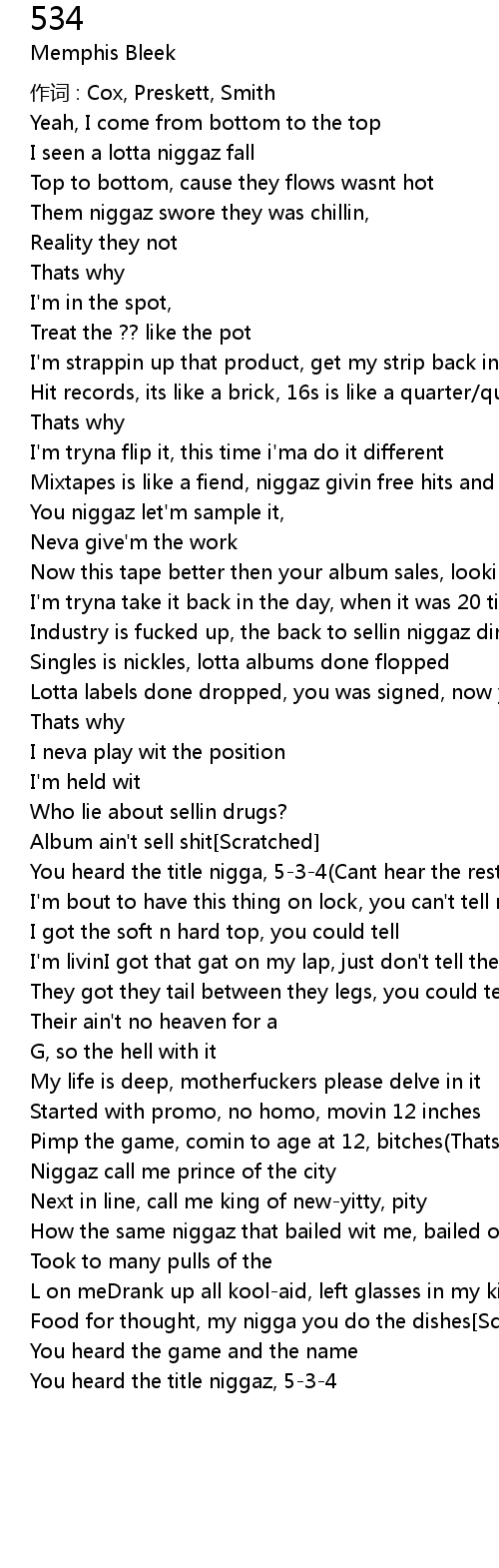 | You heard the title nigga, 534 Cant hear the rest Verse 2Memphis Bleek | |
