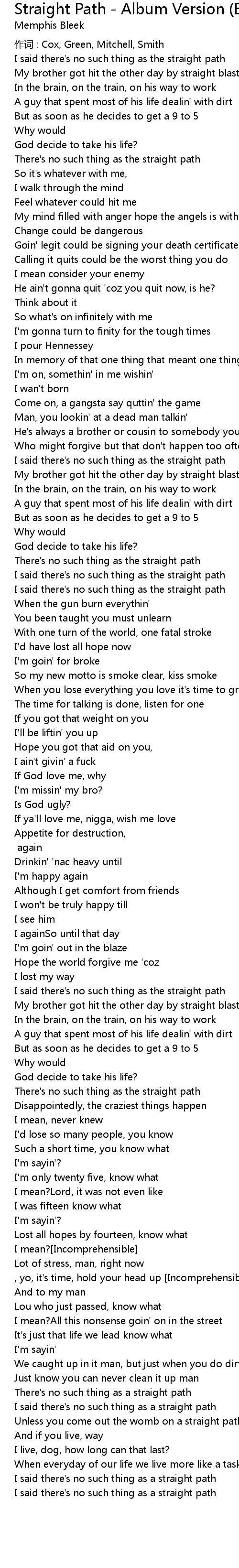 | 歌曲 | Straight Path - Album Version (Explicit) |