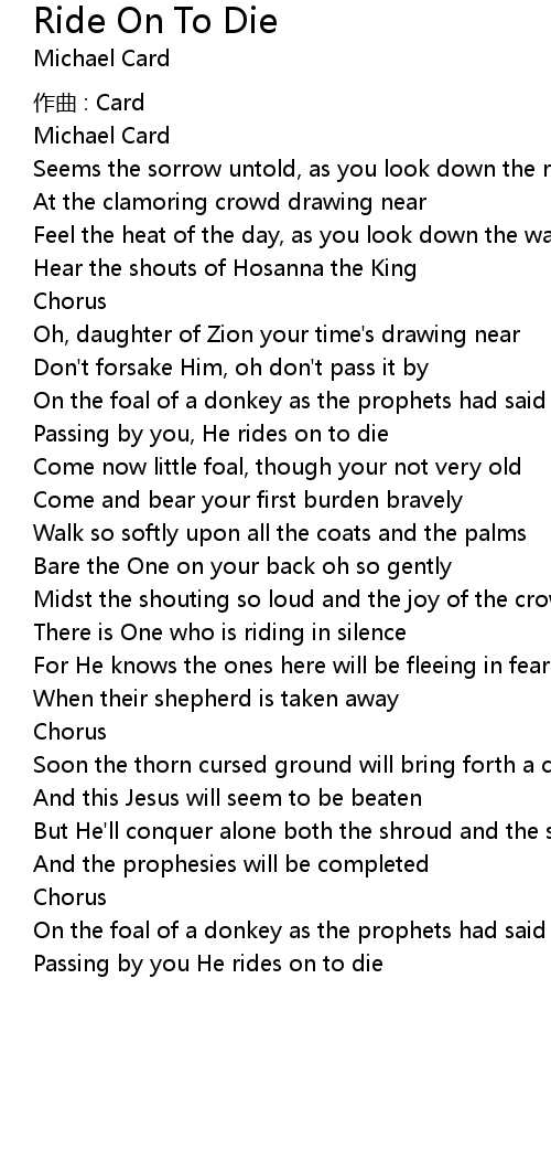 | Passing by you, He rides on to die | |