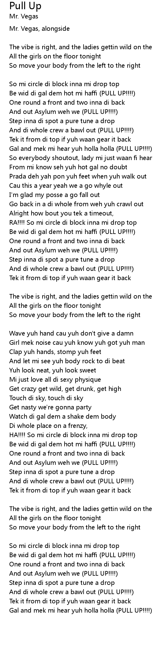 | Gal and mek mi hear yuh holla holla (PULL UP!!!!) |