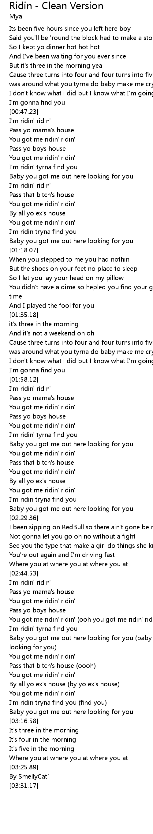 | [02:52.73] | You got me ridin' ridin' (ooh you got me ridin' ridin') |