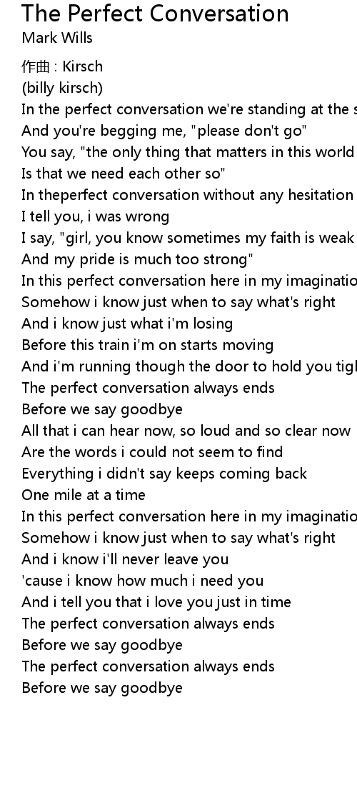 | 歌曲 | The Perfect Conversation |