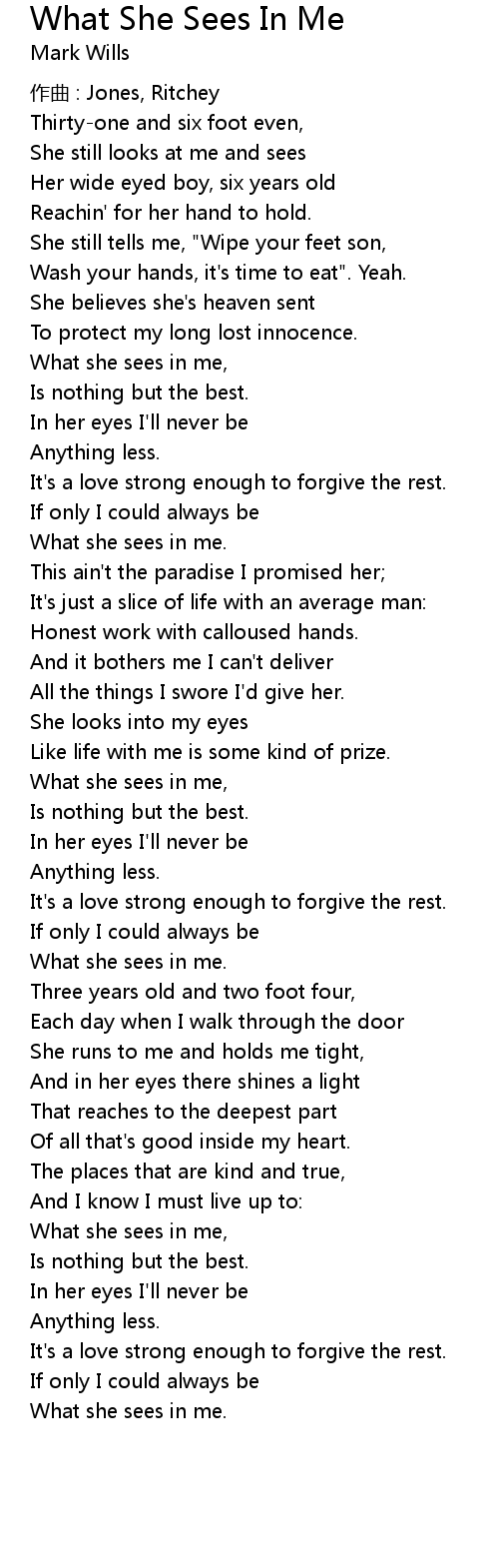 | 歌曲 | What She Sees In Me |