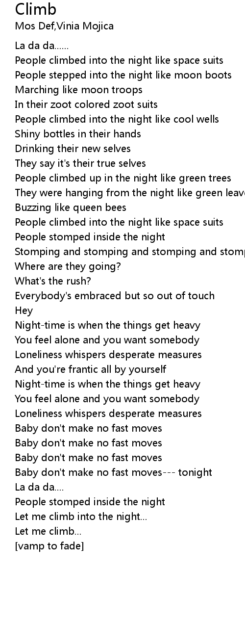 Let me climb into the night... |
