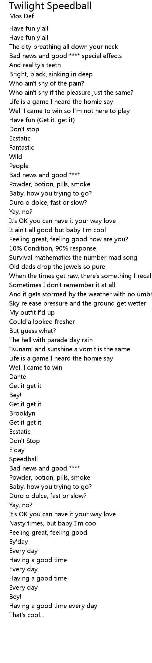 | [01:59.184] | Bad news and good **** |