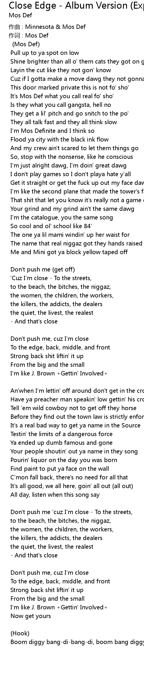 | 歌曲 | Close Edge - Album Version (Explicit) |