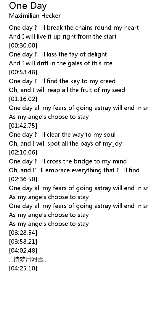 | [01:55.96] | One day I’ll clear the way to my soul |