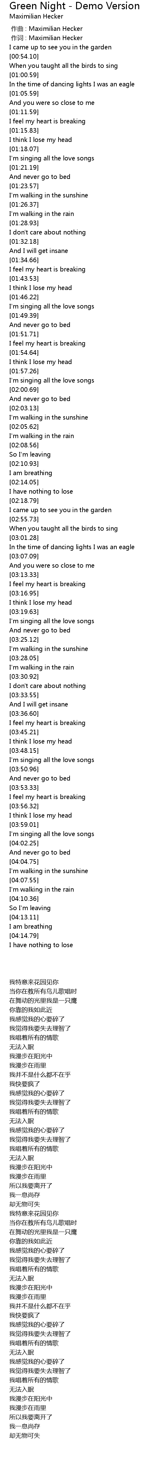 | [00:01.00] | 作词 : Maximilian Hecker |