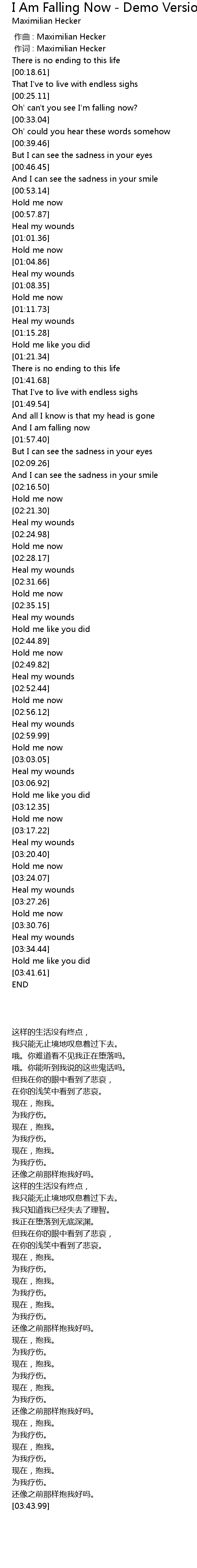 | [00:01.00] | 作词 : Maximilian Hecker |