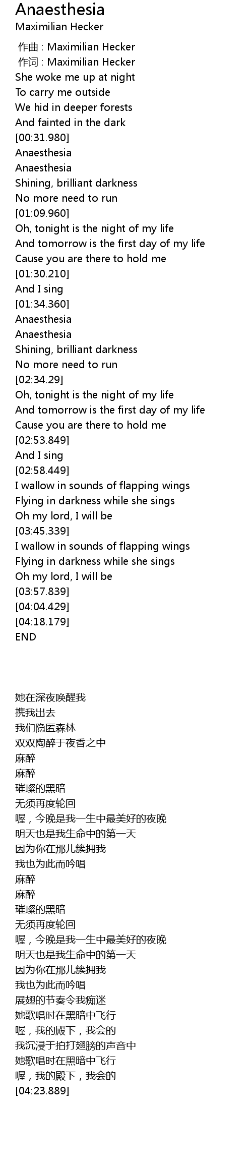 | [00:01.00] | zuo ci : Maximilian Hecker |