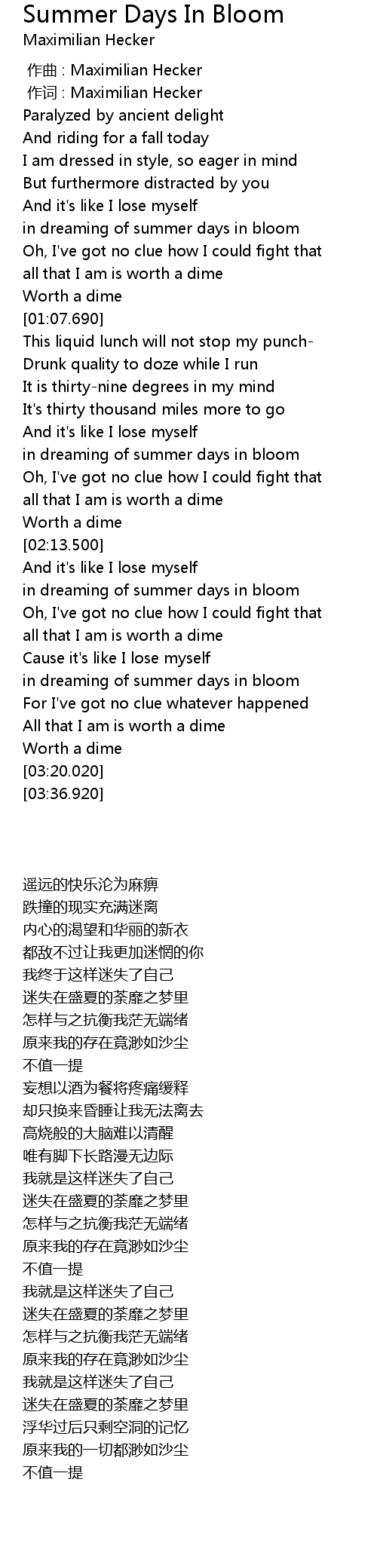 | [00:01.00] | 作词 : Maximilian Hecker |
