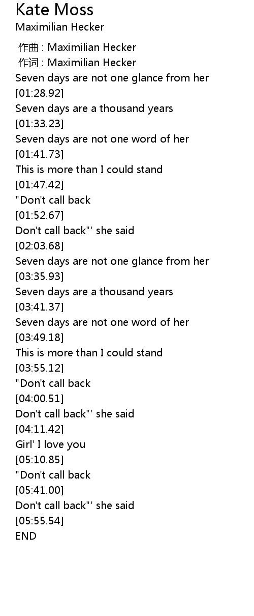 | [00:01.00] | 作词 : Maximilian Hecker |