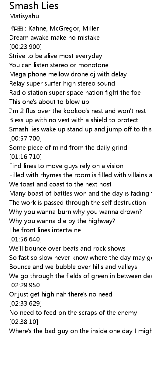 | [00:55.170] | Smash lies wake up stand up and jump off to this |