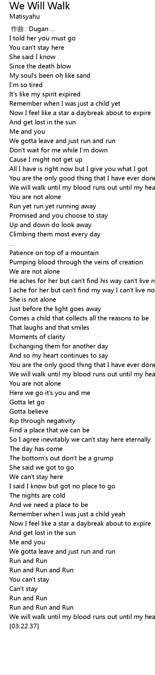 | [02:59.32] | We gotta leave and just run and run |